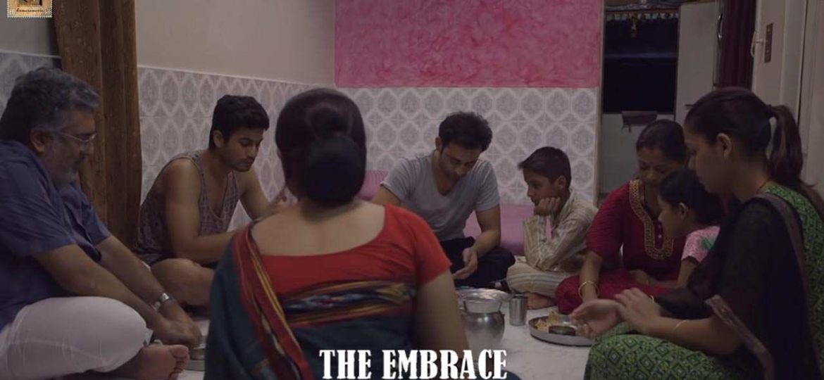 An Indian joint family shares spaces where lives and narratives overlap and privacy is stymied. Acts of intimacy, pleasure, and sexual exploration become difficult to pursue, and both privacy and sexual fulfillment become a much sought-after luxury. How, then, can a young newly-married couple navigate intimacy in such a space? How can they evade the scrutiny of not only their family members, but also society at large, and hope to ever share a private moment of closeness? The Embrace, a short film, sweetly shows how sometimes intimacy may unexpectedly be afforded in the anonymity of public space.