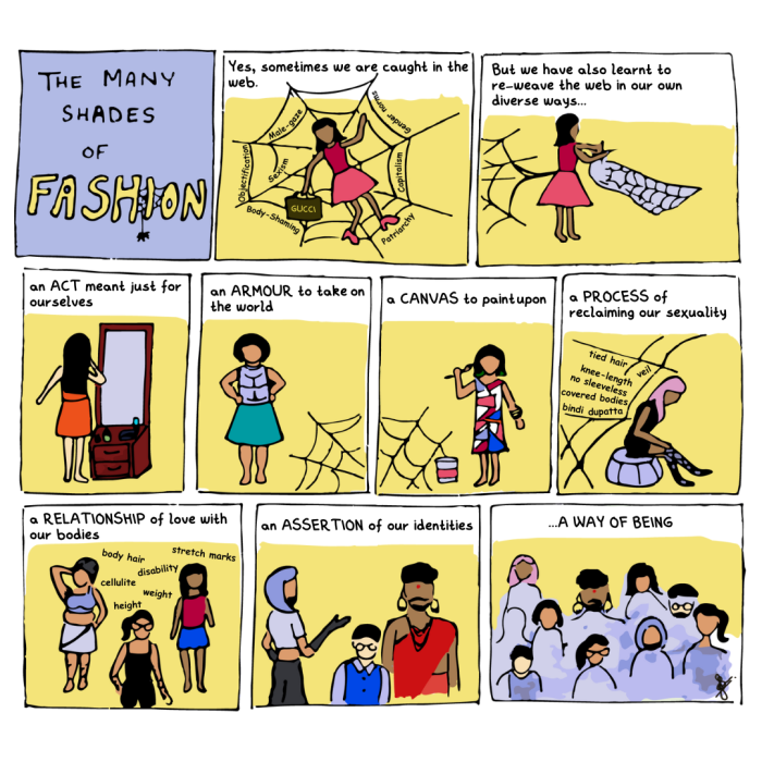 For the longest time, I associated ‘fashion’ with patriarchy and capitalism, which led me to dismiss it. However, over time, I encountered individuals who have redefined fashion on their own terms. From a friend who donned their best attire for a trip to the grocery store simply because they felt like it to another friend confidently strutting down a fashion runway wearing a bra and proudly displaying their unshaven armpits, I began to realise that fashion could be a powerful means of self-expression and self-love.