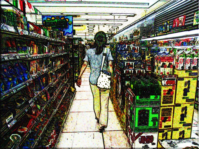 “Large will not fit you.” / She is scoping me, up and down, eyes / Flicking fast and darting away / From the roundness of my breasts / To the happy jiggle of my thighs.
