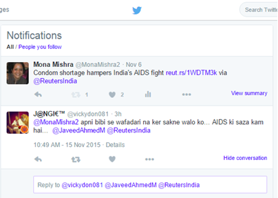 (The response to Mona’s Tweet translates as, “To those who cannot be faithful to their wife, AIDS is too little a punishment.”)