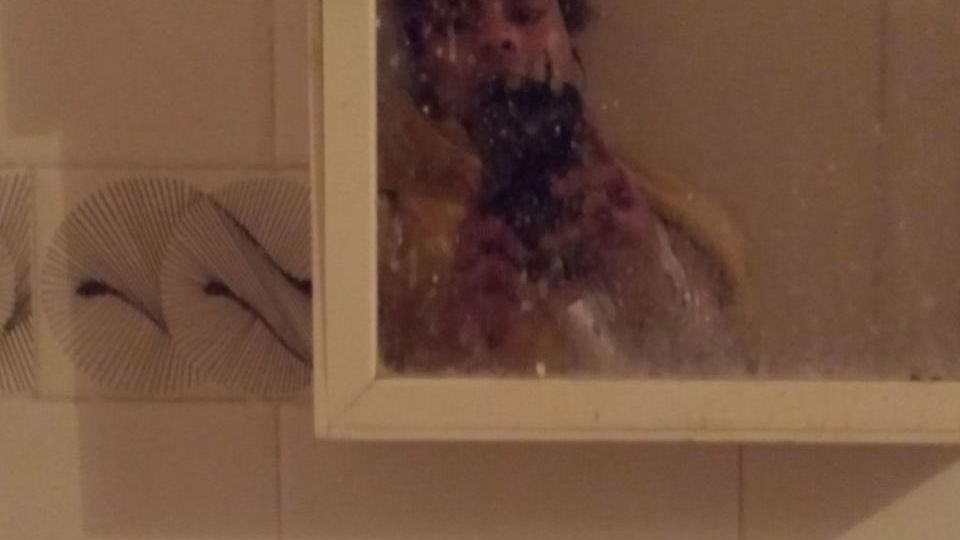 Image description: Part of a reflection of a person in the mirror. Image source: author