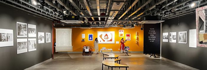 This installation powerfully illustrated how traditional art forms often become obscured as capitalism dominates cultural narratives. In a parallel manner, it underscored how the stories of women and girls from marginalised communities are frequently overlooked, rendering their voices, experiences, and stories unacknowledged and silenced.