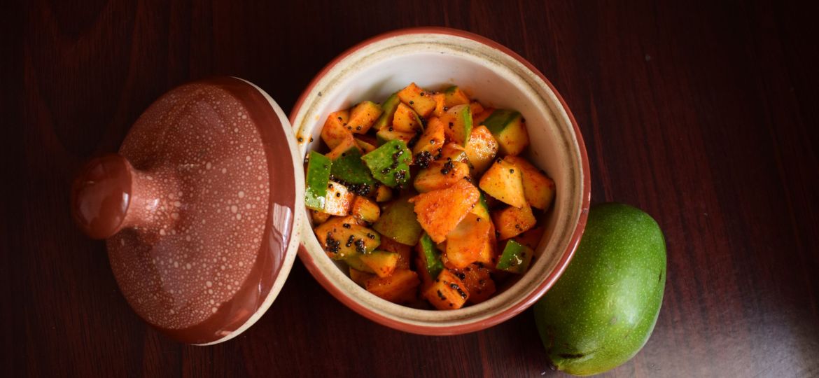Salt was placed at the top left hand corner of the leaf. She loved salt. Nothing was exempt from a good sprinkling of salt. Even curd rice. Even when she had these dizzy spells, brought on by sudden surges of blood pressure, she would add salt to her food, on the sly. She didn’t see any doctors. She didn’t care. Sometimes he found her attitude rather selfish. She needed to take better care of herself – for their sake, at least. He, on the other hand, would rush to the clinic even at the first sneeze that was brought on by a change in the weather. And the pickle she ate! Huge quantities! Like a serving of curry! Strange, nobody in her family would touch pickle – they all had a sweet tooth. He wondered which generation had passed on this anomaly to her. The next boy brought the pickle. Finely sliced mango-flavoured ginger and lemon with a medley of green chillies. Oh she loved pickles alright! She made pickles by the jars, dozens of varieties and gave them away to every visitor. In fact, she shamelessly asked for a bottle of pickle when she visited a friend or relative. If they ran out of pickle, she had no qualms about buying pickle from stores; Premier pickles were her favourite, especially, the mango avakaya.