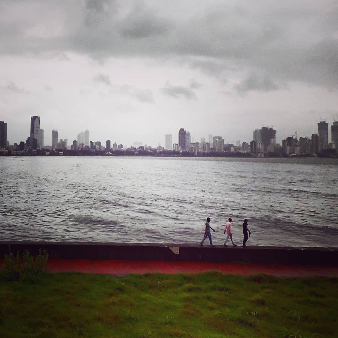 तेज़ हवा और तूफान के बीच ट्रेन से वाशी की खाड़ी का दृश्य (चित्र : तन्वी खेमानी)