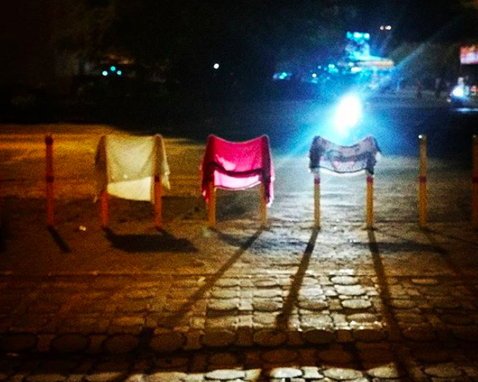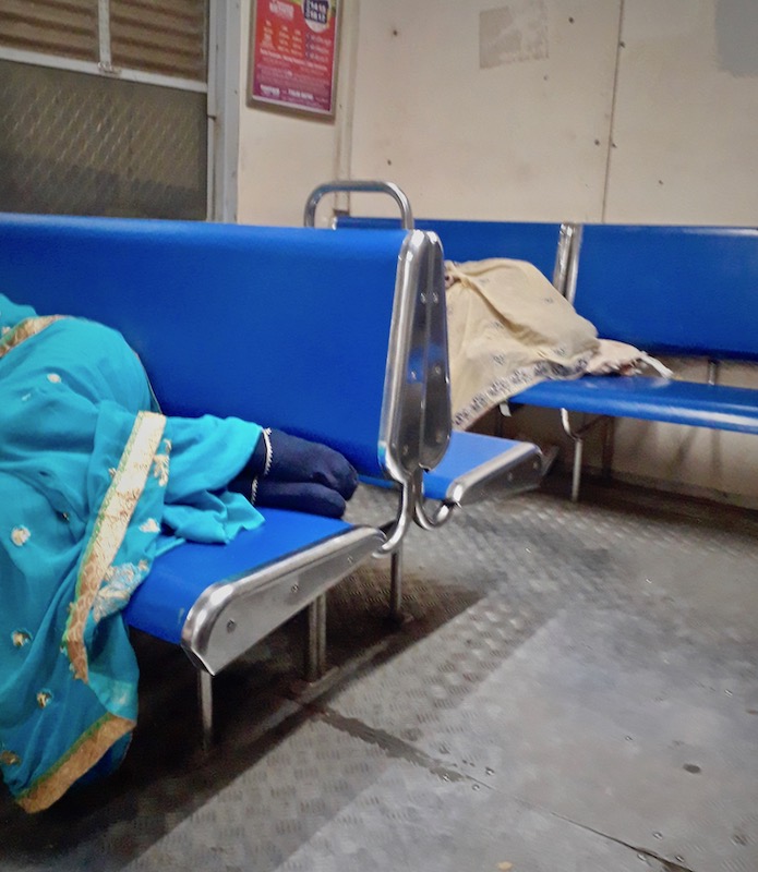 आख़री लोकल ट्रेन के लेडीज़ कम्पार्ट्मन्ट में सोती हुई महिलायें (चित्र : तन्वी खेमानी)