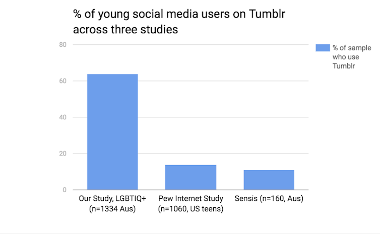 Compared to broader surveys of young people’s social media use, we found young LGBTIQA+ people are using Tumblr much more frequently.