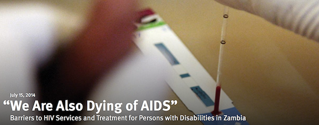 ह्यूमन राइट्स वाच द्वारा जुलाई 2014 में जारी रिपोर्ट, ‘We Are Also Dying of AIDS’: Barriers to HIV Services and Treatment for Persons with Disabilities in Zambia’ (‘ज़ाम्बिया में विकलांग लोगों को एचआईवी सेवाएं मिलने और उनके उपचार में आने वाली बाधाएं – हम भी एड्स के कारण मर रहे हैं,’) में हमने ज़ाम्बिया में विकलांगता के साथ रह रहे लोगों को एचआईवी सेवाएं पाने में आने वाली दिक्कतों का उल्लेख किया है। इनमें एचआईवी के रोकथाम से जुडी जानकारी न मिल पाना, जांच और उपचार में आने वाली कठिनाईयां शामिल हैं। ज़ाम्बिया में विकलांगता के साथ रह रहे लोगों की संख्या लगभग 20 लाख है और देश के किसी भी अन्य नागरिक की तरह उनमें भी एचआईवी संक्रमण होने का खतरा है। पिछले एक दशक के दौरान ज़ाम्बिया में एचआईवी की रोकथाम और इसके उपचार करने के प्रयासों में बहुत प्रगति हुई है लेकिन एचआईवी के विरुद्ध इस लड़ाई में विकलांग लोग अभी भी सम्मिलित नहीं किए गए हैं।