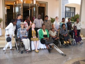 Stella Nkhonya, who is Director of Malawi Human Rights for Women and Girls with Disabilities in Lilongwe, together with Fatima Kalima a close friend from Blantyre who also runs Forum for the development of youth with disability had undertaken all the hard work of bringing of us together. Stella met me and the DOPA at the airport, together with her partner Steve, and piled us, our cases, my wheelchair, her crutches and all into her small adapted car and delivered us to the hotel to sleep off the journey.