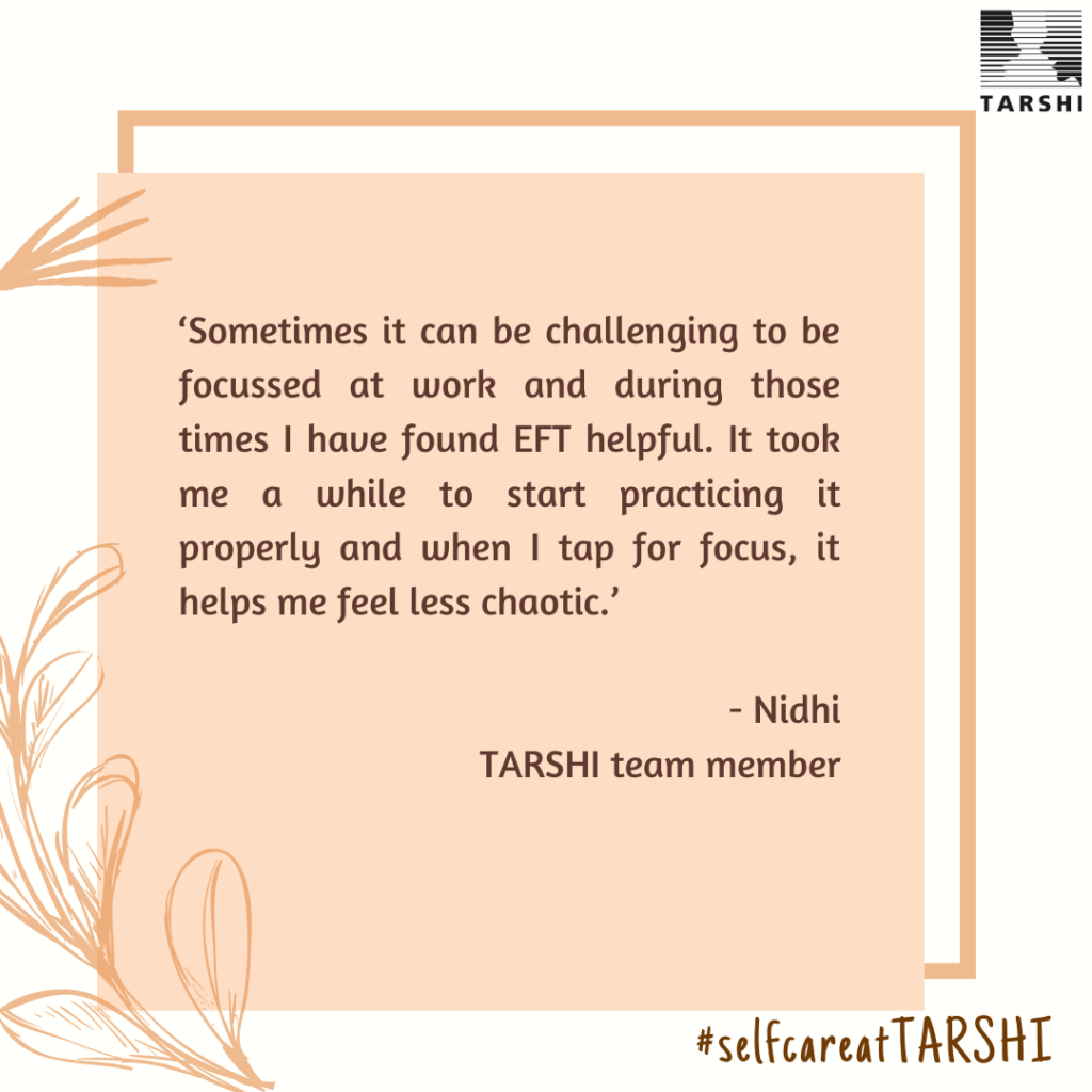 Some of the team members in TARSHI practice this regularly every week and the collective tapping has effectively helped us both personally and professionally.